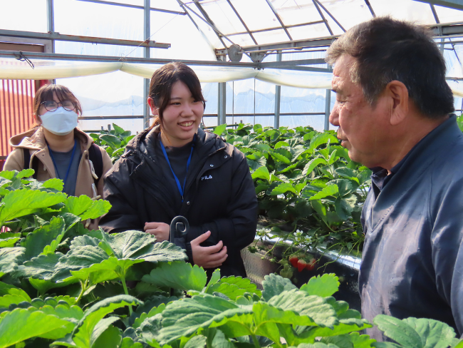 参加した学生は「これまでのインターンシップは話を聞くだけのものが多かったが、今回は実際に生産現場を訪れ、農家の方の工夫や取り組みを知ることができ、とても勉強になり楽しかった」と話しました。