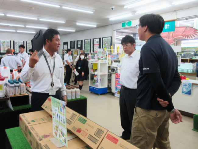 続いて、店舗内の視察を行い、昨年リニューアルした設備やPOP作成への工夫について説明しました。参加者はセンター職員との交流を通じ、現場での取り組みに理解を深めました。