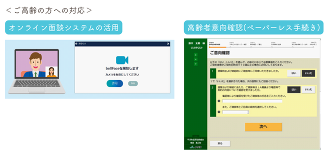 ご高齢の組合員・利用者の方については、ご家族も含め十分ご納得、ご満足いただけるよう、ご契約手続きの際は、オンライン面談システムも有効活用しながら、ご家族の方に同席いただく対応を基本とするなど、丁寧な対応を行っております。