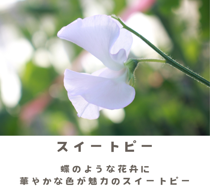 蝶のような花弁に 華やかな色が魅力のスイートピー