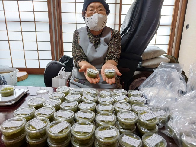 出来上がったゆずこしょうをカップに50グラム詰め77個作り、「朝いち」では飛ぶように売れました。