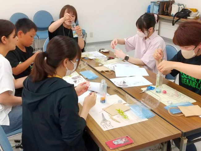 講師にフェアリーフラワーズの秦信子氏を招き、夏をテーマにしたハーバリウム作りを行いました。