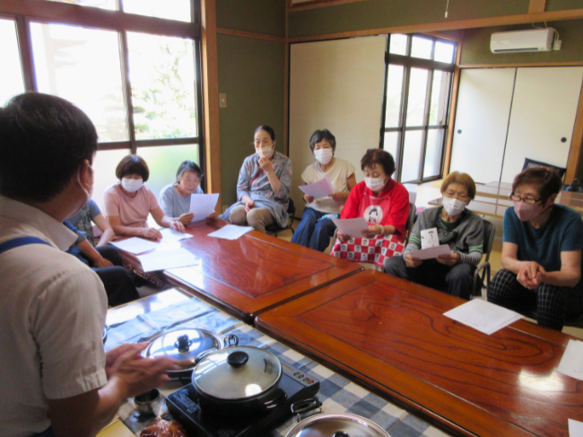 調理の実演では鍋の効率的な使い方を学び、機能性にすぐれた調理器具で日常の家事を支援して女性部の仲間づくりや地域の活性化にも繋げるために行いました。