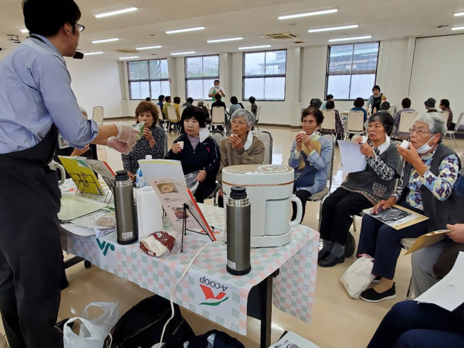 参加者は「エーコープマーク品は材料が国産という事で安心して食べれますね」「原材料が良いんですね」と話しました。