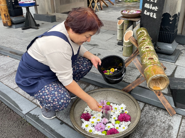 花手水は手軽にできて多くの方に喜んでもらえ、女性部活動として新たに定着してきています。
