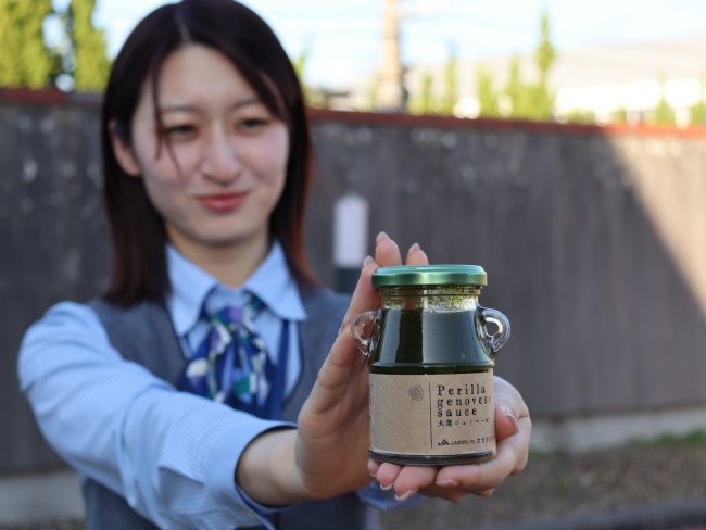 部員の大葉農家が「大葉を無駄にせず、台所に一品でも多く大葉の料理が並ぶため何か商品ができないものか」と今年度当初より話し合いを重ねて“大葉ジェノベーゼソース”の開発と販売に取り組むことを決めました。
