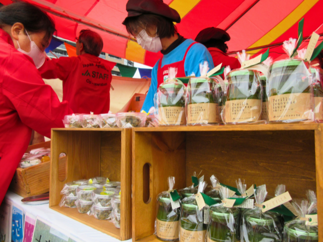 加工品の販売コーナーでは、同女性部が開発商品化した大分市特産の大葉を使用したジェノベーゼソースを販売し、午前中で完売しました。