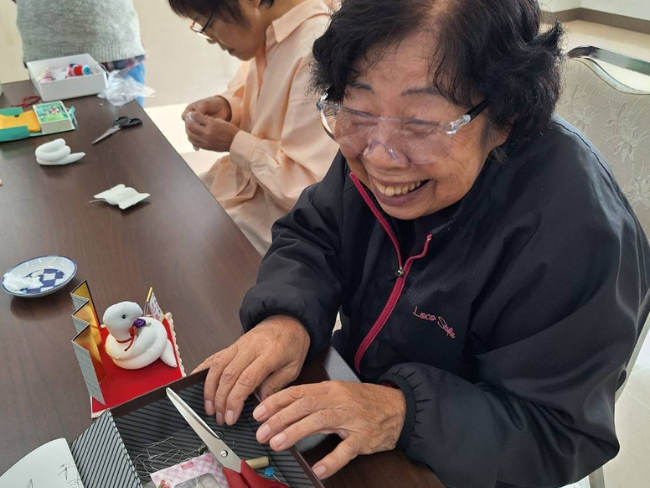 11月13日に、臼杵女性部はうすき組合員ホールできらきら手芸教室を開き、来年の干支である巳の置物を作りました。