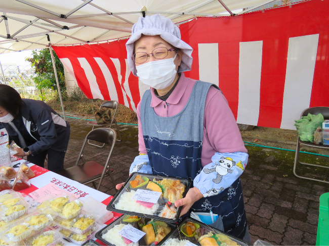 12月13日に、国東女性部はよりそいプラザ武蔵で行われた食品販売イベントに参加し、手作り弁当と饅頭を販売しました。