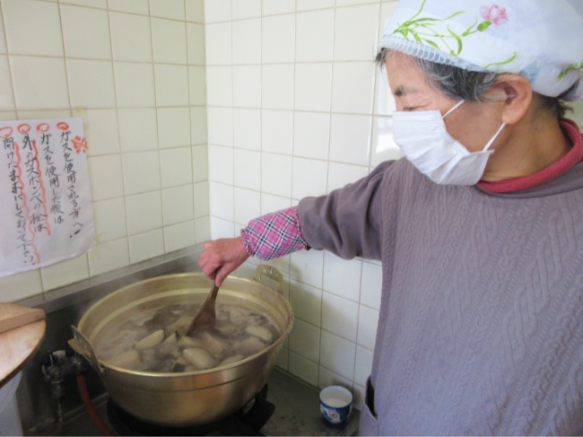 毎年恒例の行事で味も良いため部員と地域住民はコンニャク作りを楽しみにしていました。
