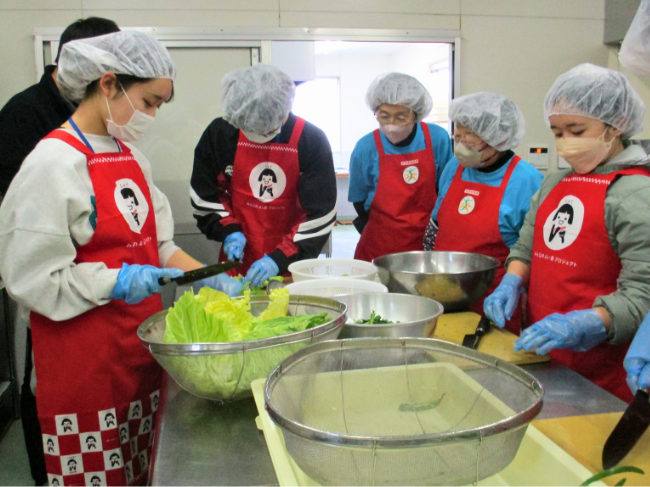1月17日に、大分市女性部は滝尾地区津守の加工所で2026年度に卒業する大学生を対象にインターンシップ活動体験を行い、大学生5名が参加しました。
