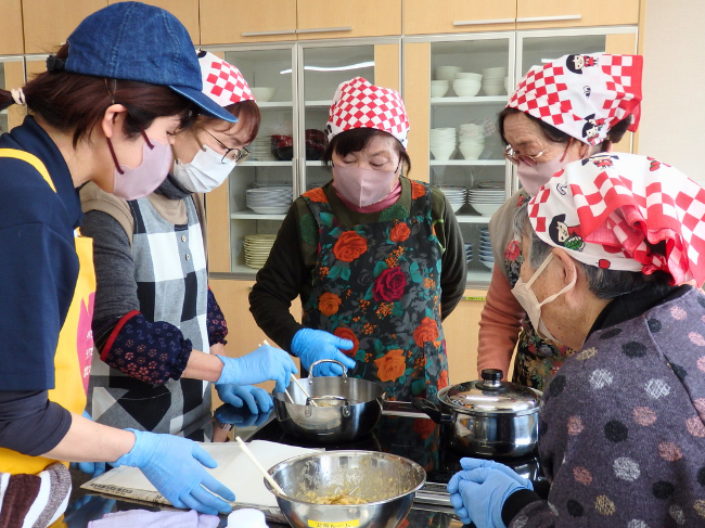 1月30日に、国東女性部は国東市武蔵町の公民館でIHクッキングヒーターを使った料理教室を開き、部員12名が参加しました。