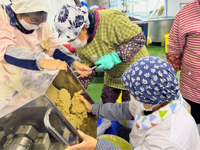 コロナ禍前は「じゅんあい味噌」という商品名でAコープや直売所で販売もしており根強いファンもいたが、近年では部員減少や高齢化により店舗販売分を作るのが難しくなったため、部員や地域の人からの依頼分の約450㎏を作りました。