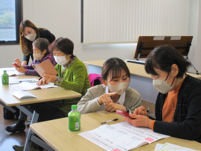 ドコモショップ金池店のスマホ教室担当者5名が講師となり、「インターネットを使おう」講座と「アプリを楽しもう」講座の2講座を受講しました。