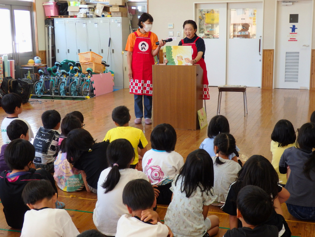 女性部員による食育をテーマにした紙芝居の読み聞かせや、ちゃぐりん食農クイズのほか、ちゃぐりんに掲載の工作「こんにちは人形」の製作を行いました。