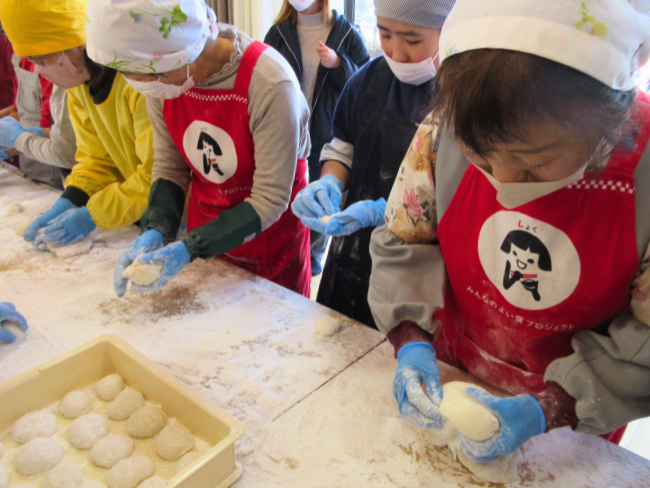 12月7日に、日田女性部は五和公民館主催のもちつき大会に参加しました。 女性部は子どもたちや保護者を対象にもち米の蒸し加減や小餅の丸め方の指導を任され、約70名が集まり地元で収穫された15キロのもち米を使い掛け声に合わせ餅をつき小餅630個が出来ました。 子どもたちは「楽しかった、フワフワして気持ちがいい」と笑顔いっぱいに話しました。