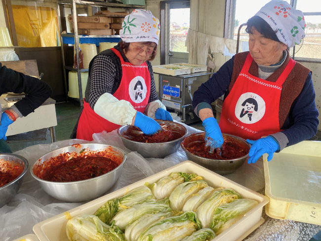 1月21日に、宇佐女性部は宇佐市の天津農村婦人の家で部長の木下昌子さんを講師にキムチづくりを行いました。