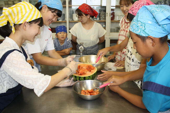 また、半分に切ったスイカの中をくりぬき、豊後大野産の果物を入れたフルーツポンチも「おいしい」と好評でした。