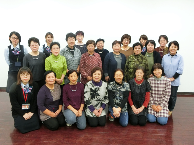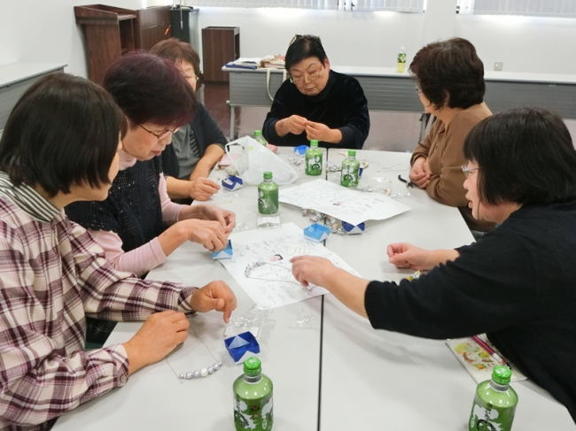 女性部員17名が参加し、「コットンパールのネックレス」を作りました。