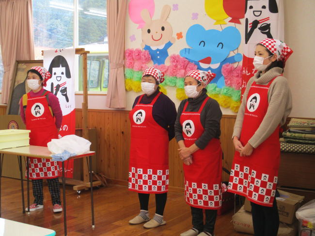 今回のおにぎり教室ではフレッシュミズ小野部長含め計5名が参加。子どもも女性部員もみな元気いっぱい!