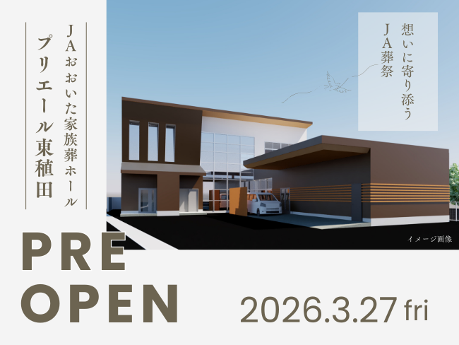 このたび「よりそいプラザ東稙田店」を改装し、少人数でのお見送りに対応した家族葬ホール プリエール東稙田を4月1日(水)にオープンいたします。