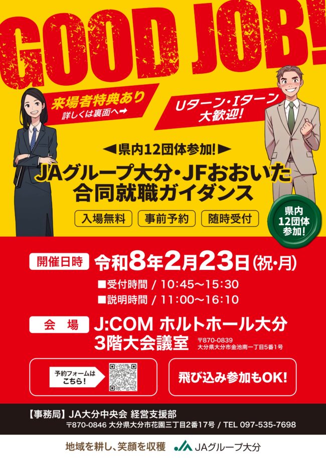 JAグループ大分とJFおおいたが合同で就職ガイダンスを行います‼